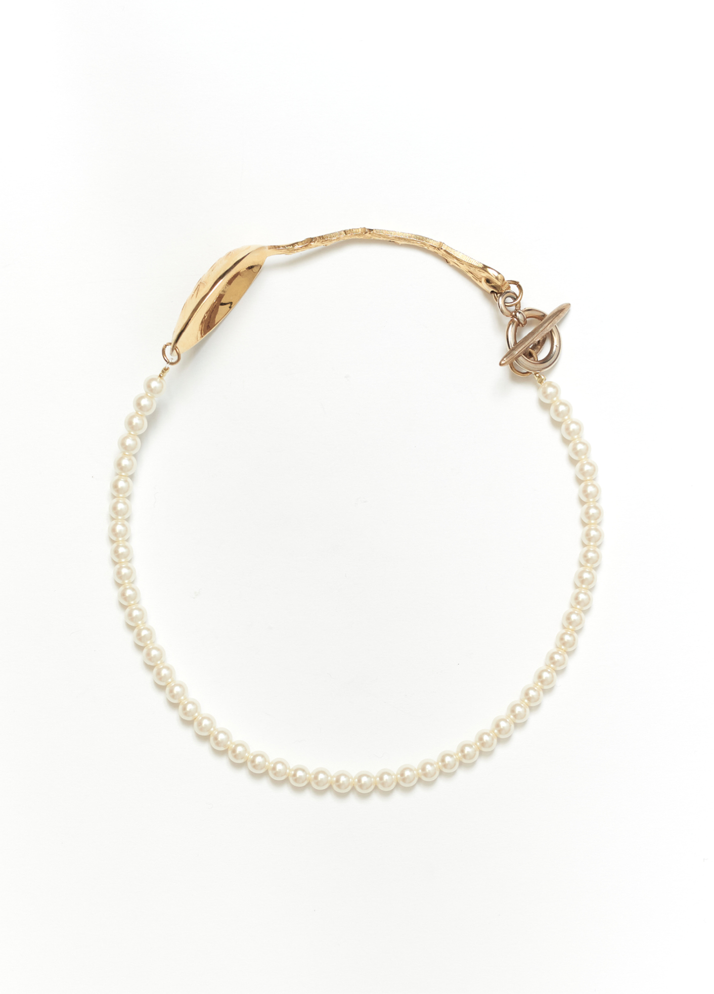 Le collier GROSSETA est composé d’une cuillère ancienne en argent et de perles nacrées vintage.