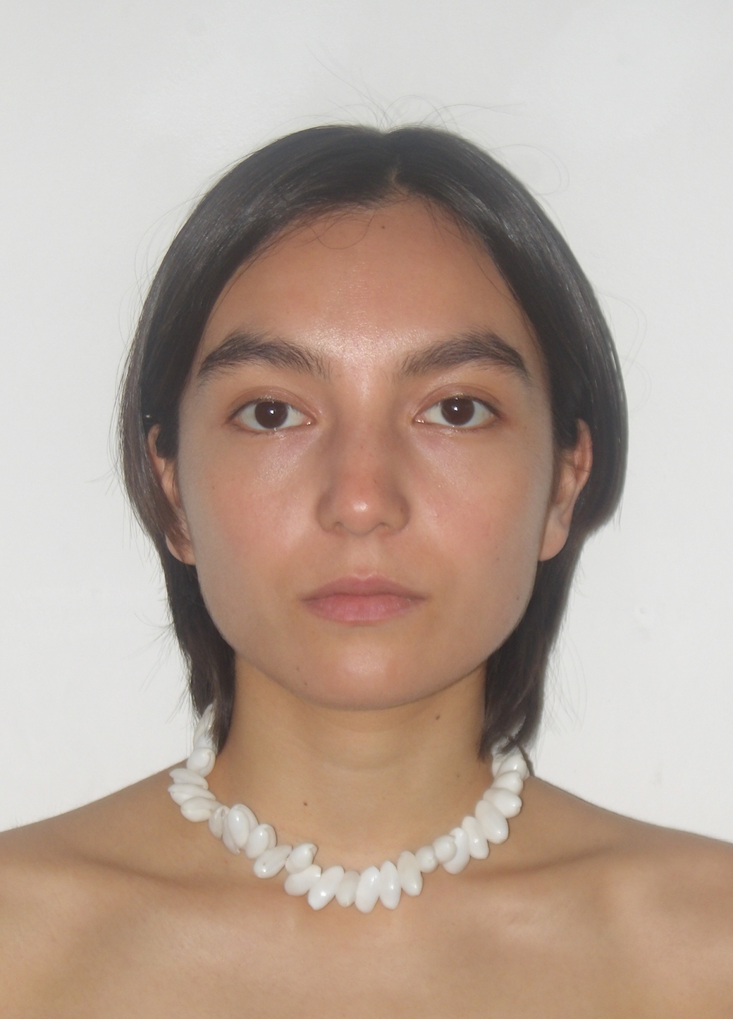 Le collier SELVAGGIO est composé d’une cuillère à caviar en nacre et de coquillages blancs vintage.